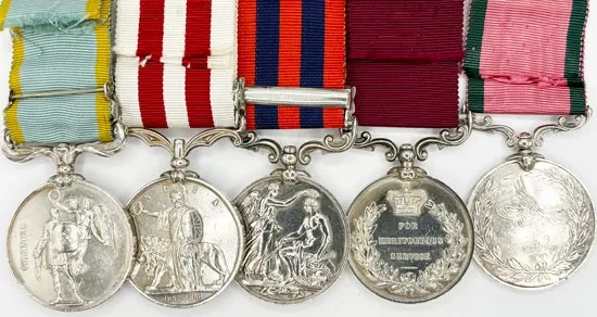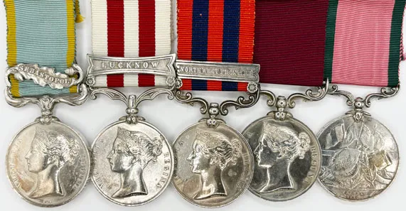 In any event, he served in India with the 79th Foot, August 1857 to May 1883. Serving in the suppression of the Indian Mutiny, he took part in the engagement at Secundragunge, the siege and capture of Lucknow, the actions at Rooyah, Allygunge, Bareilly and Shahjehanpore, the capture of Mahomdie, the storming of Rampore Kussia and the passage of the Gogra - being slightly wounded in the latter action (not listed as such in the published casualty roll). Afterwards he continued to serve with his regiment on the North West Frontier and took part in the expedition under Brevet Colonel A. F. Macdonell, December 1863 to January 1864. Appointed a Colour Sergeant in 1868, he was transferred to the 103rd Foot in December 1869 and 92nd Highlanders in June 1870. In July 1870 he was transferred as a supernumerary to the 23rd Foot (Royal Welsh Fusiliers) and was appointed a Bazaar Sergeant. Discharged in 1883 at the termination of his second period of engagement, he was appointed a Park Ranger at King’s Park, Edinburgh, a post he held for 20 years. Hay was awarded the Meritorious Service Medal with an annuity of £10 on 3 June 1900. He died in 1922. Several members of his family also served in the 79th Foot (Cameron Highlanders).