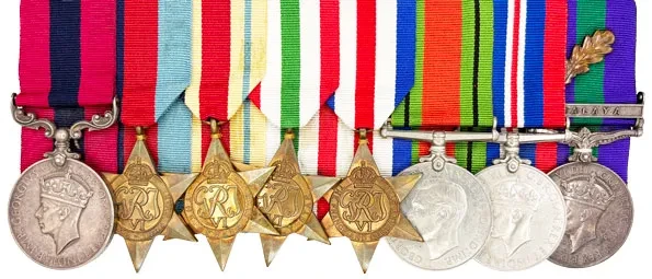 1939-45 Star; Africa Star; Italy Star; France and Germany Star; Defence and War Medals