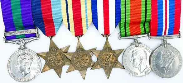 General Service Medal named to: 6342630 PTE. L. SAGE. R.W. KENT R. Single clasp for Palestine.