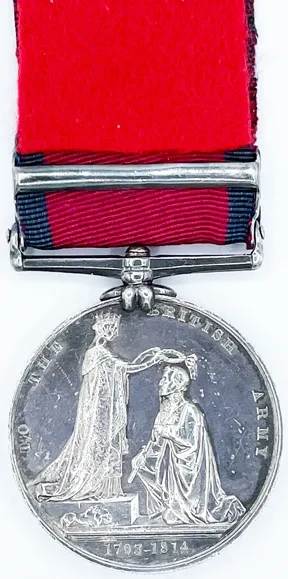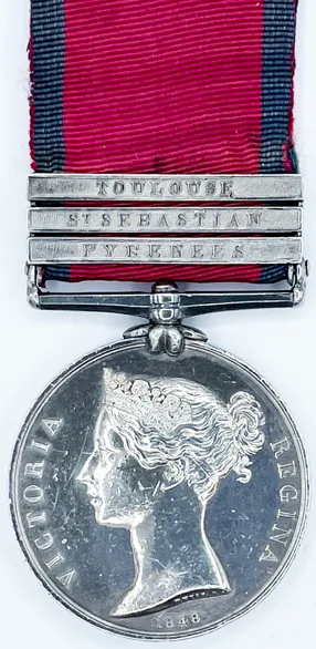 Clasps for Pyrenees, St. Sebastian and Toulouse. Copy of service papers shows service in America in the War of 1812.
